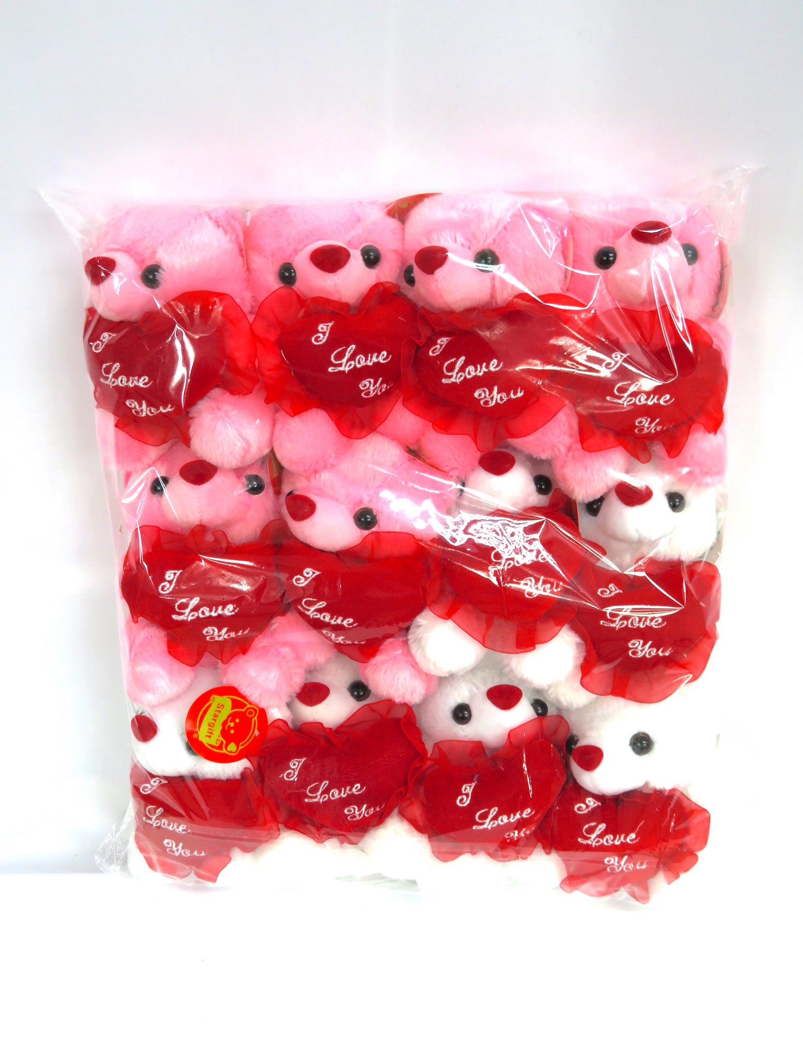 Twelve soft pink and white bears with "I Love You" heart 0551 - 0551